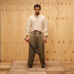 He completed his casual look by layering over a blue jacket